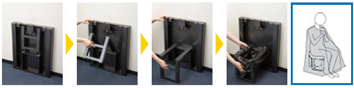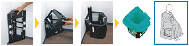 備蓄ボックス本体がトイレに変形することで、コンパクトサイズを実現。