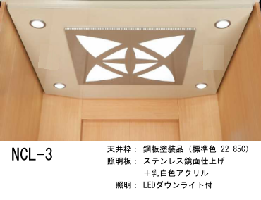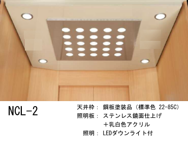 天井照明は、かご内のイメージを左右する重要なポイントのひとつです。モダンなデザインと斬新なアイディアでさらにおしゃれな空間へ。